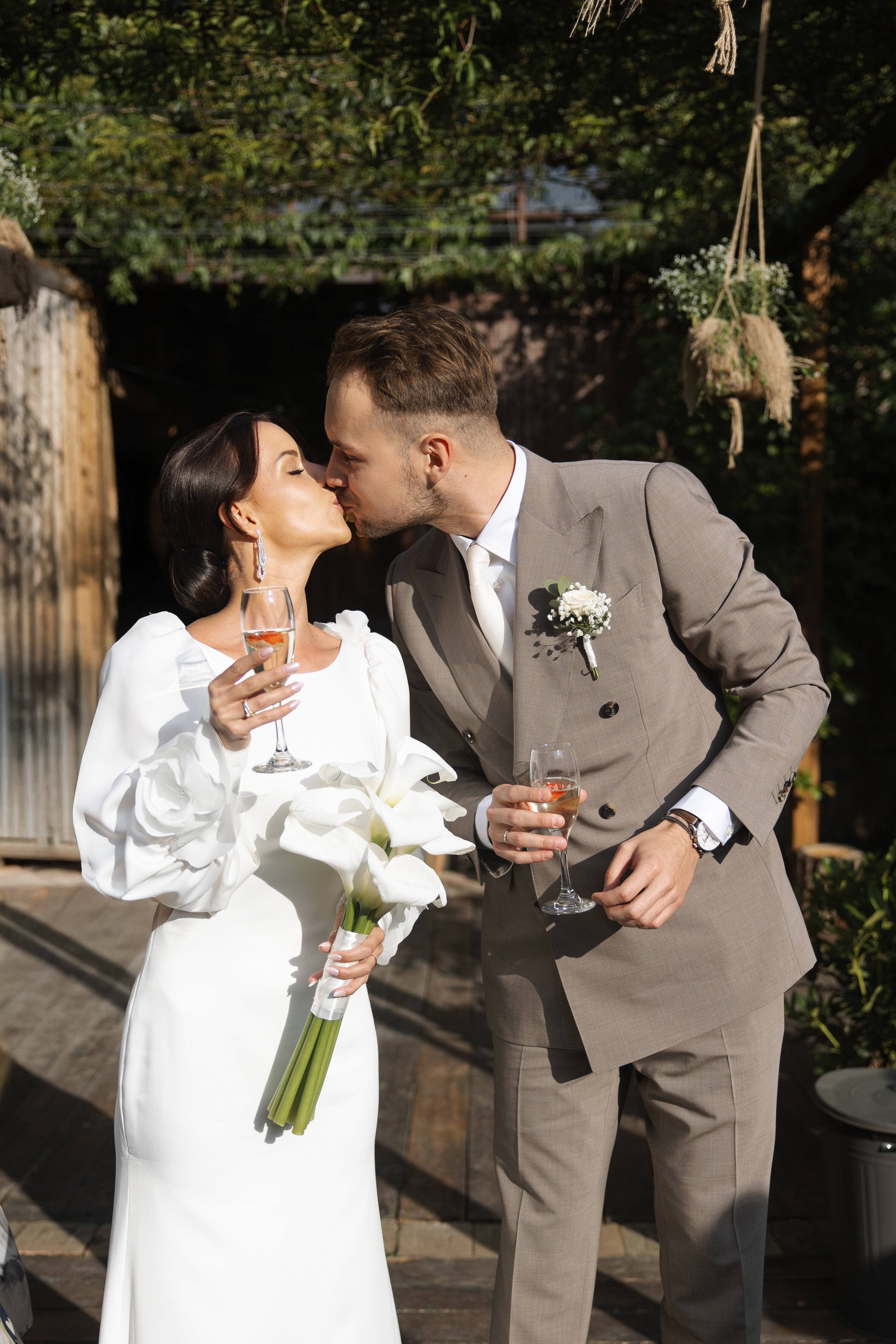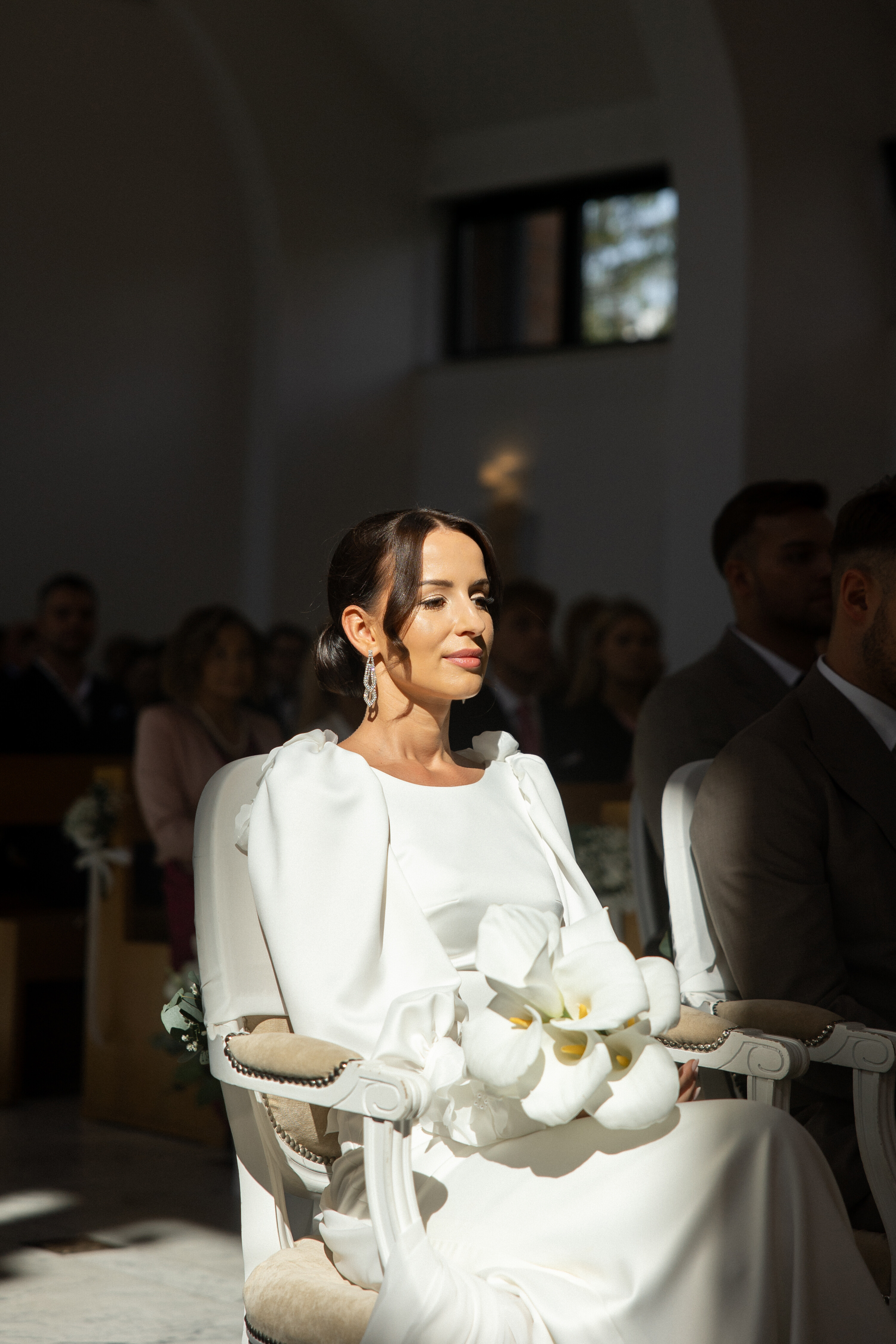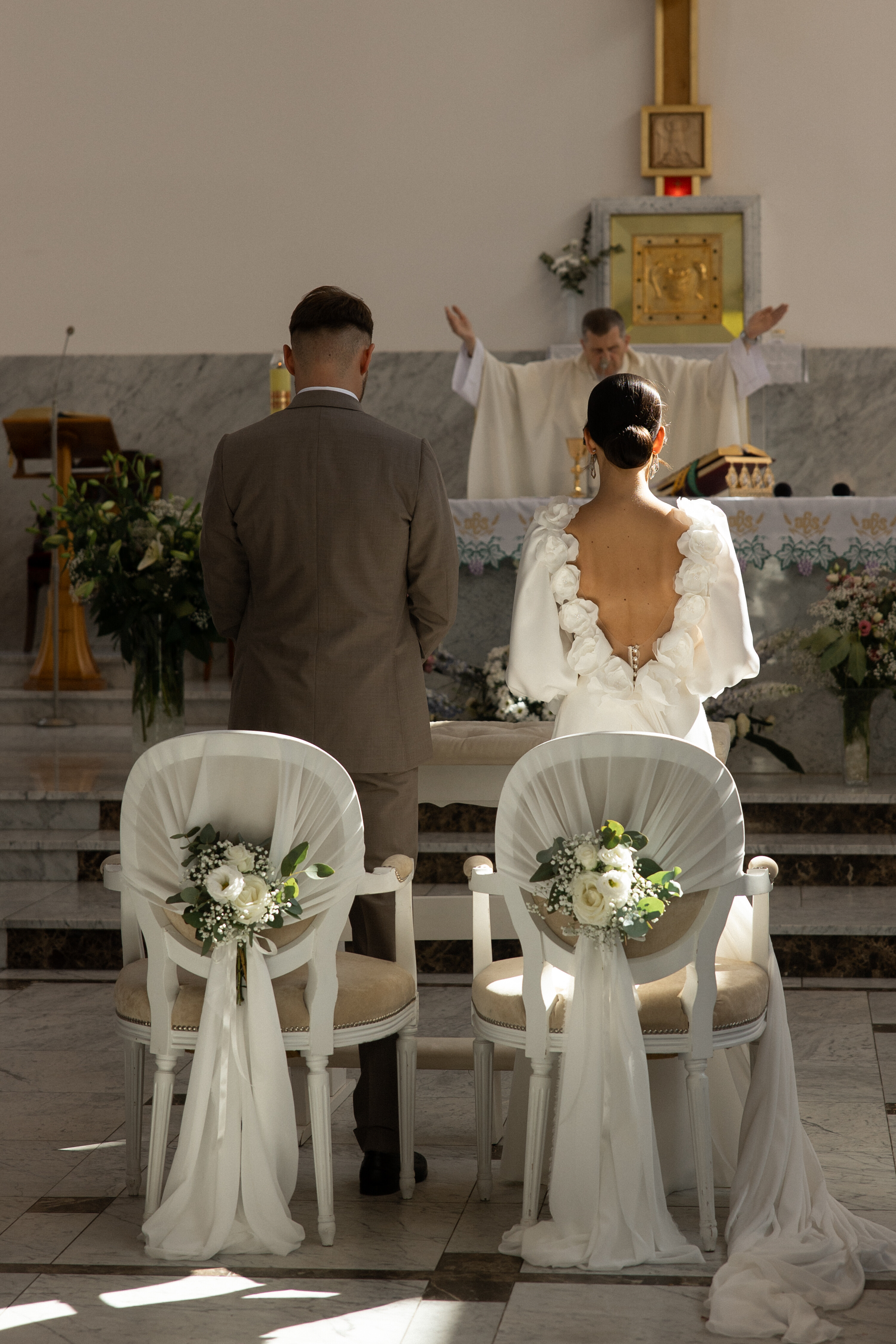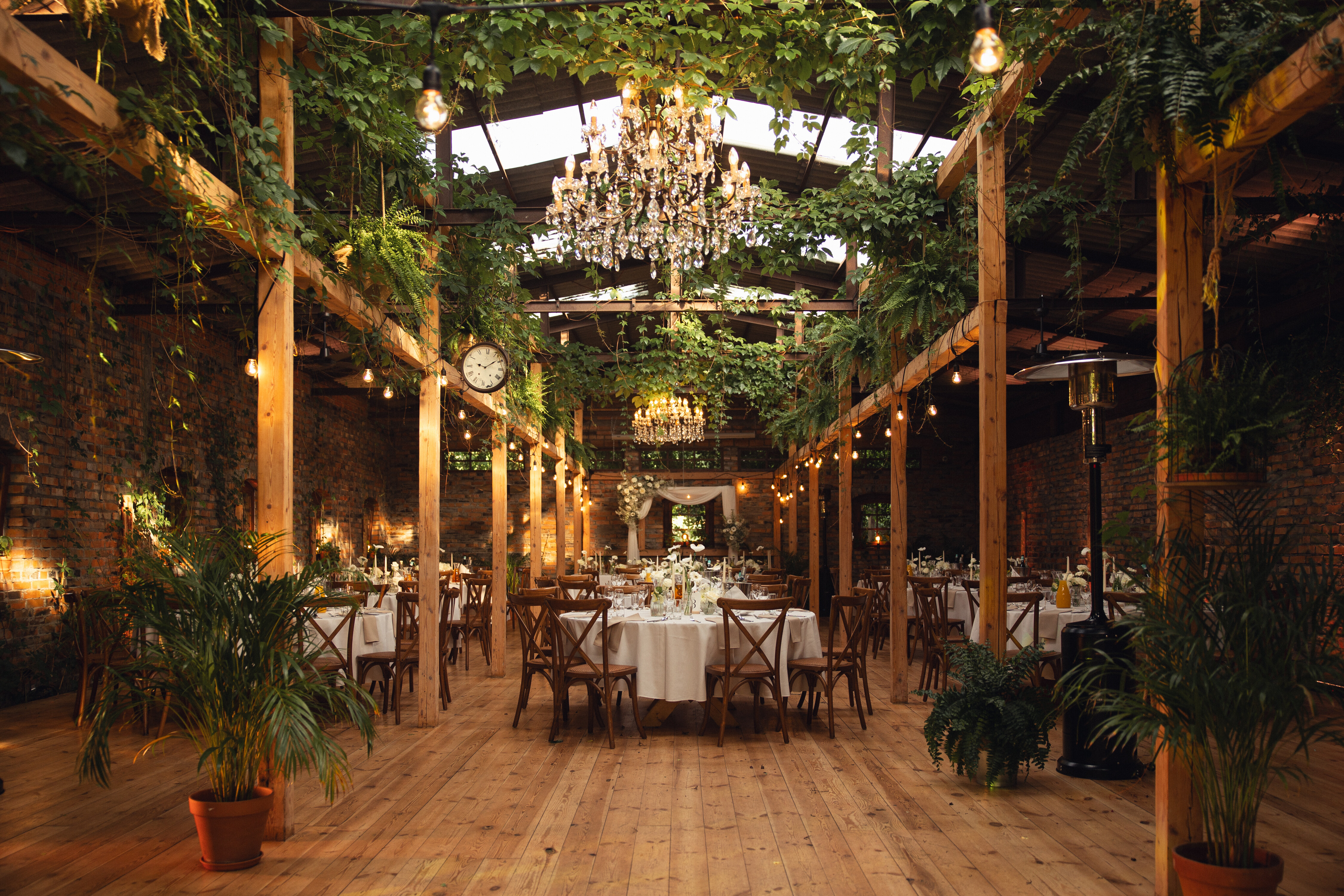 Wesele w Cichej 23 w Markach zostało zaprojektowane w jasnej, eleganckiej kolorystyce opartej na bieli. Na stołach pojawiły się dekoracje kwiatowe w małych wazonikach, które razem tworzyły spójną i lekką aranżację. Taki układ pozwolił uzyskać pełny efekt bez ciężkich form, idealnie wpisując się w charakter sali. Całość to przykład dekoracji ślubnych, w których prostota i elegancja budują atmosferę przyjęcia.
